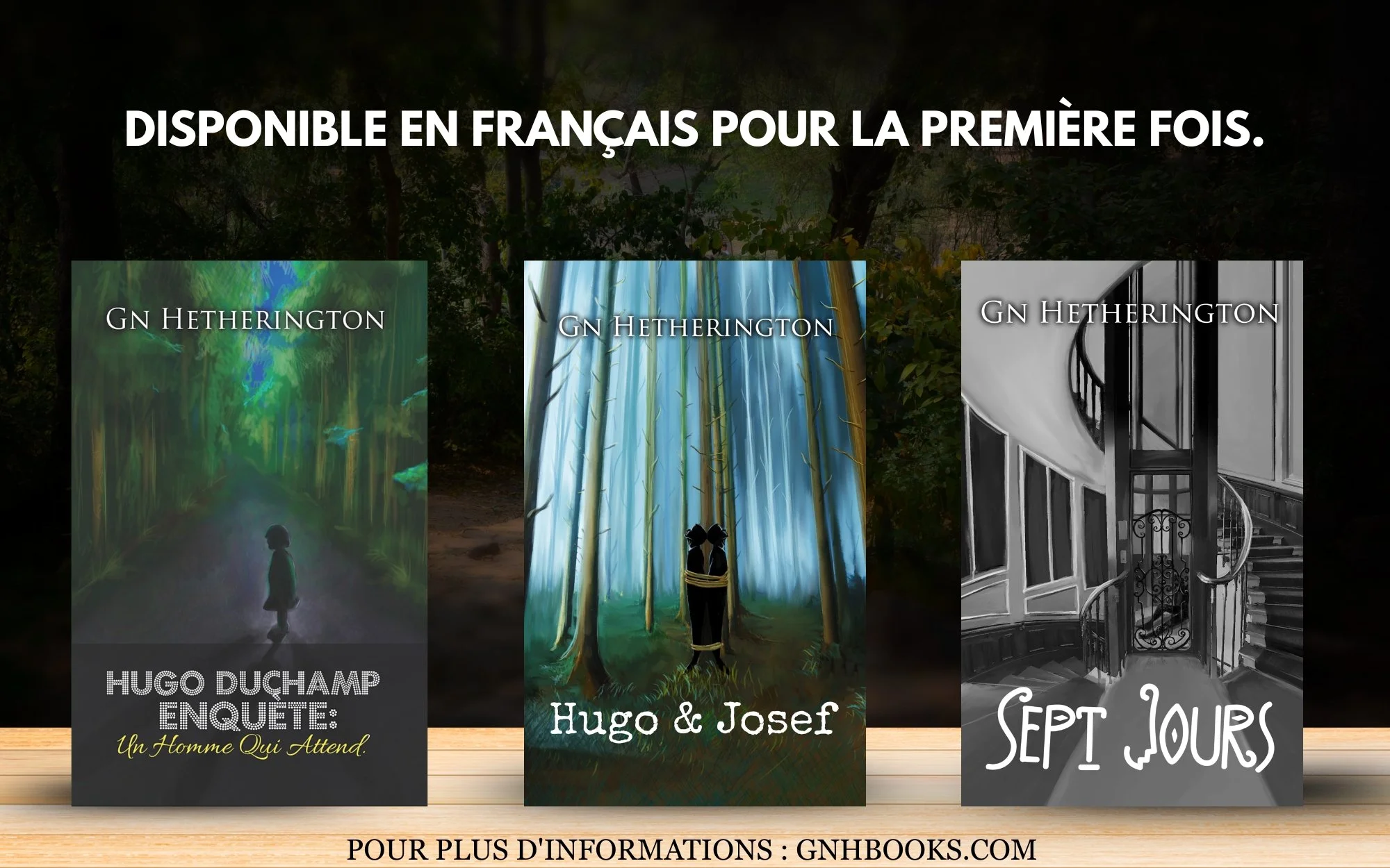 Gn Hetherington is the author of the Hugo Duchamp Investigates & Coco Brunhild Mysteries series of books, set mainly in France, including the kindle number one international mysteries & crime bestsellers 'Un Homme Qui Attend,' ‘Sept Jours,’ and ‘Hugo & Josef.’ Several of his books have been translated into French and Spanish as well as produced in audiobooks.
